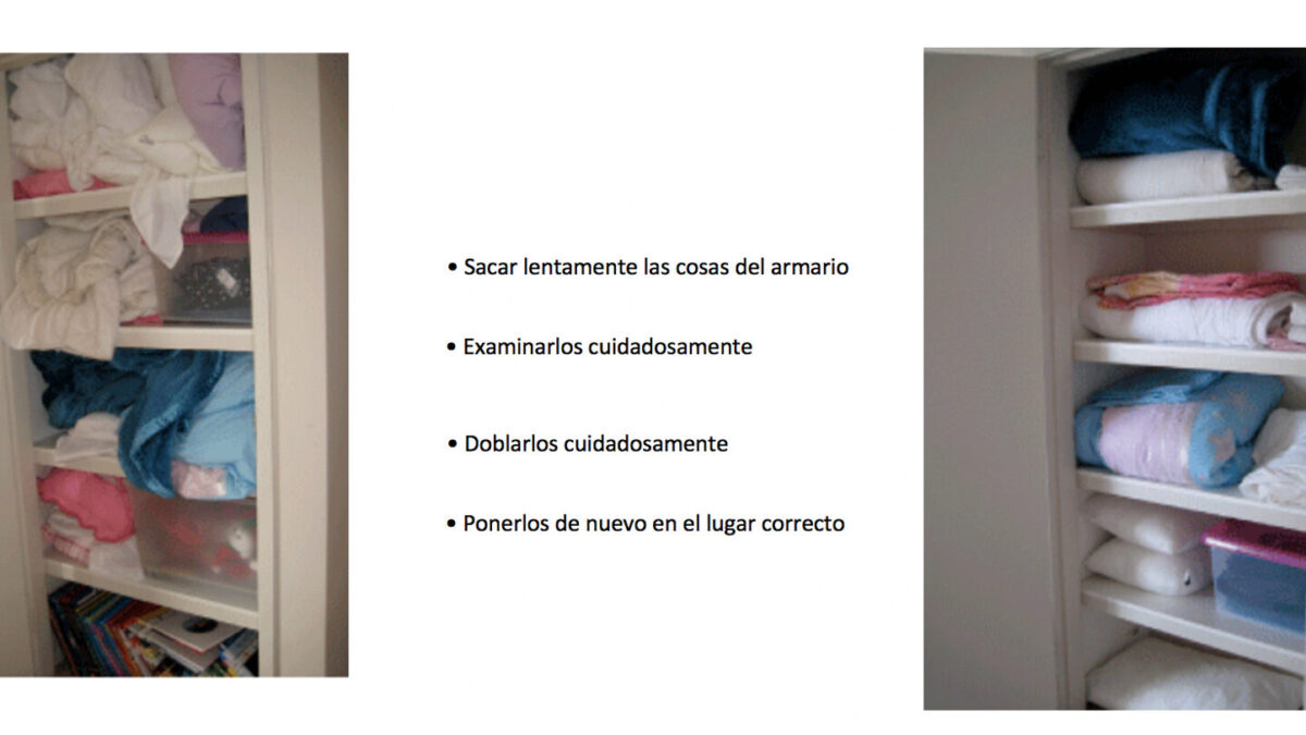 La metáfora del armario de lino PSYCHOLOGYT LS ® Los recuerdos en el trastorno de estrés postraumático son un poco como artículos rellenos en un armario de ropa sucia. Cada vez que pasas por el armario, la puerta se abre y los objetos se caen: en otras palabras, cuando te encuentras con un recordatorio del trauma, tienes recuerdos o recuerdos intrusivos y sientes un miedo intenso. Una respuesta típica es tratar de meter cosas en el armario y cerrar la puerta lo más rápido posible. Pero esto solo mantiene el problema: los recuerdos se atascan en el armario y la puerta se abrirá con el toque más ligero.